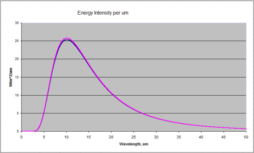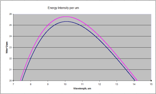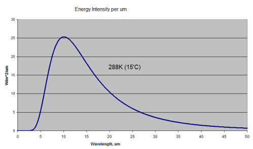 Blackbody Radiation at 288K and 289K (15'C and 16'C)