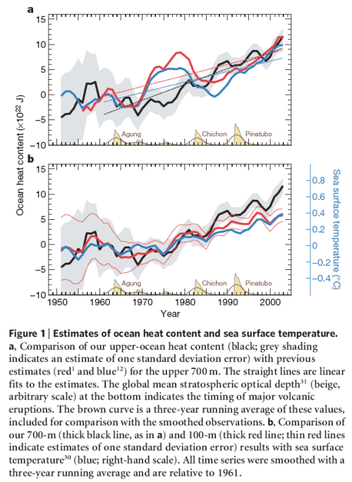In Gary’s comment he reproduced his back of envelope calculations of how much surface temperature should have changed over this 27 year period.