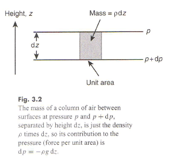 That leads to the equation of hydrostatic balance equating the pressure gradient force to the gravitational force:
