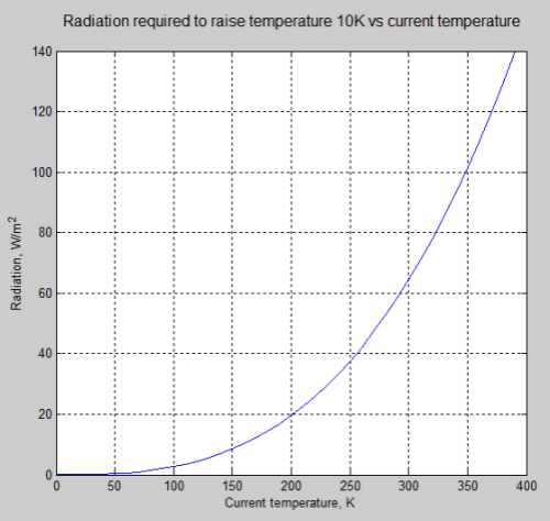 So a temperature change of 500 K amounts to 500 billion joules = 500 GJ for each square meter of the planetary surface. This is the energy we need to flow out of the system in order for it to move from present conditions to the isothermal conditions that would eventually apply under Leonard’s thought experiment.