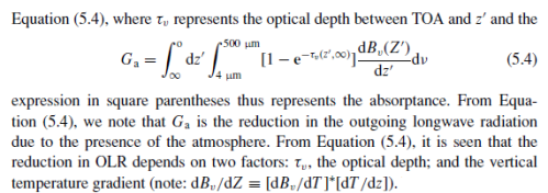 What the second law tells us, particularly in the above Clausius form, is that the net spontaneous energy exchange describing the flow of each chunk of incoming energy to the atmosphere MUST ALWAYS BE IN THE DIRECTION OF DECREASING TEMPERATURE. Heat flows “downhill” from high to low temperature regions. The incoming energy starts from the star – very high temperature. If it’s absorbed it’s somewhere in the atmosphere or the planetary surface, and from that point it must go through successfully colder and colder portions of the system before it can escape to space (where the temperature is 2.7 K).