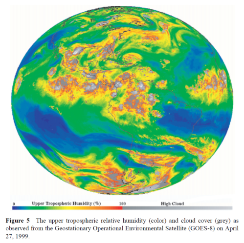 This energy is carried by convection up into the higher levels of the atmosphere and eventually radiates to space. The combination of convection of water vapor and surface heated air upwards dominates the total transported energy from the ground level. In addition, some of the ground level thermal energy is radiated up, with a portion of the thermal radiation passing directly from the ground to space. Water vapor, CO2, clouds, aerosols, and other greenhouse gases also absorb some of this radiated energy, and slightly increase the lower atmosphere and ground temperatures with back radiation effectively adding to the initial radiation, resulting in a reduced net radiation flux. This results in a higher temperature atmosphere and ground than without these absorbing materials.