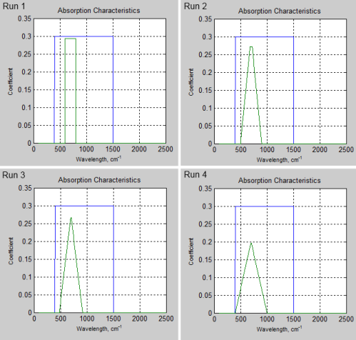 I also tried halving the absorption characteristics of pH2O to see the effect. Runs 1-4 were repeated as Runs 9-12 with the only change being the halving of the absorption coefficient of pH2O: