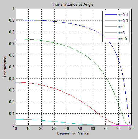 Part Three – the simple model extended to emission and absorption, showing what a difference an emitting atmosphere makes. Also very easy to see that the “IPCC logarithmic graph” is not at odds with the Beer-Lambert law.