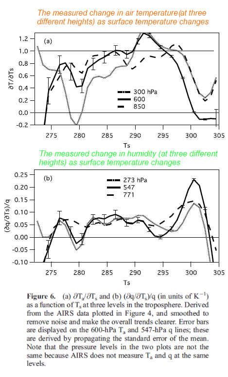 Part Seven – Upper Tropospheric Models & Measurement – recent measurements from AIRS showing upper tropospheric water vapor increases with surface temperature