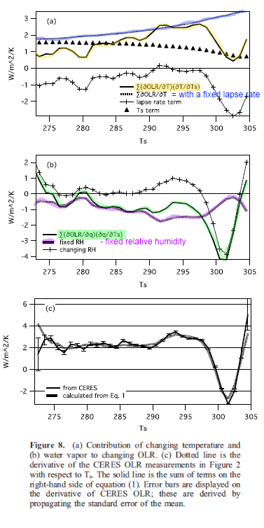 But even with the guarded comments of a published paper, the results are very interesting – and help, at the very least, to illuminate some aspects of how water vapor and atmospheric temperature interact to change the radiative cooling from the planet.