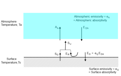 When the surface is a blackbody (εG =1), SU = SG – that is, the upwards radiation from the surface = the emitted radiation from the ground.