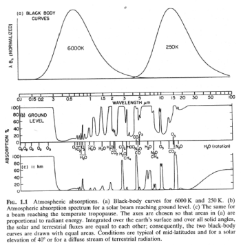..This figure also shows the atmospheric absorption spectrum for a solar beam reaching the ground level (b) and the same for a beam reaching the temperate tropopause (c) adopted from Goody and Yung [30]. Part (a) of Figure 5 completely differs from the original twin-peak diagram of Goody and Yung. We share the argument of Gerlich and Tscheuschner [2,4] that the original one is physically misleading..
