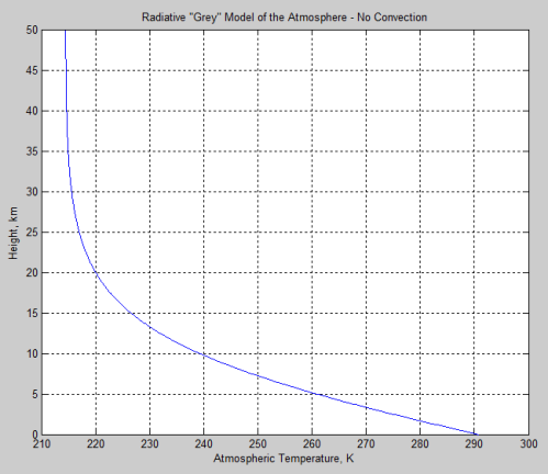 So how do figures 3 & 4 come undone? Surely once the atmosphere is stable to convection then it becomes static and heat can only move radiatively from the surface into the atmosphere?