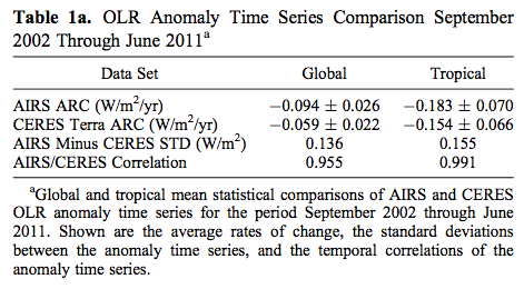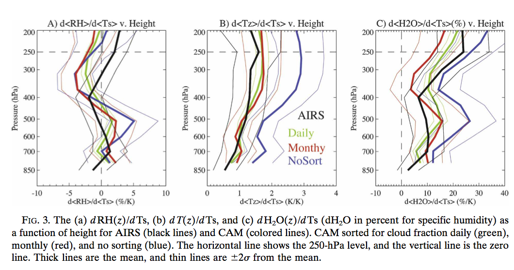 Because the changes in net absorption above the tropopause (the place where convection stops and let’s review that definition a little later) affect the temperature of the stratosphere very quickly. So the stratosphere quickly adjusts to the new world order and of course this changes the radiative forcing. It’s like (in non-technical terms) the stratosphere responded very quickly and “bounced out” some of the radiative forcing in the first month or two.