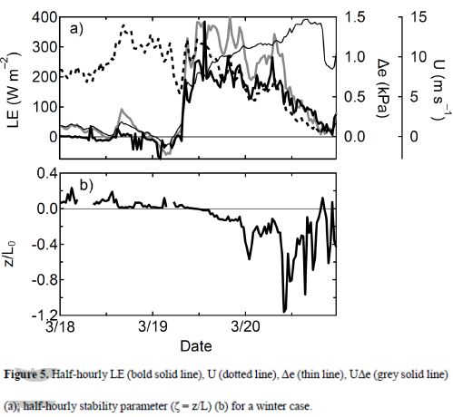In Latent heat and Parameterization I showed a formula for calculating latent heat transfer from the surface into the atmosphere, as well as the “real” formula. The parameterized version has horizontal wind speed x humidity difference (between the surface and some reference height in the atmosphere, typically 10m) x “a coefficient”.