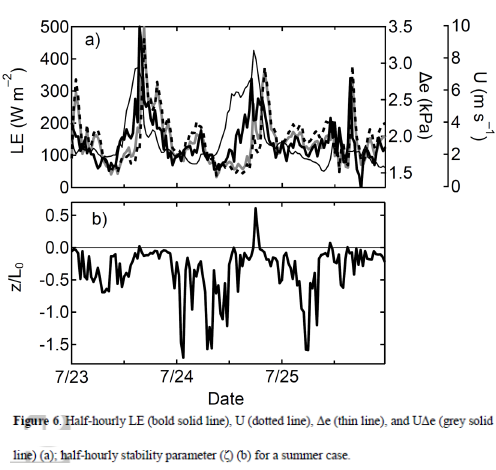 Adding the Richardson number for non-neutral conditions we end up with a temperature difference along with a reference velocity to model the turbulent vertical flux of sensible heat . Similar arguments give latent heat flux