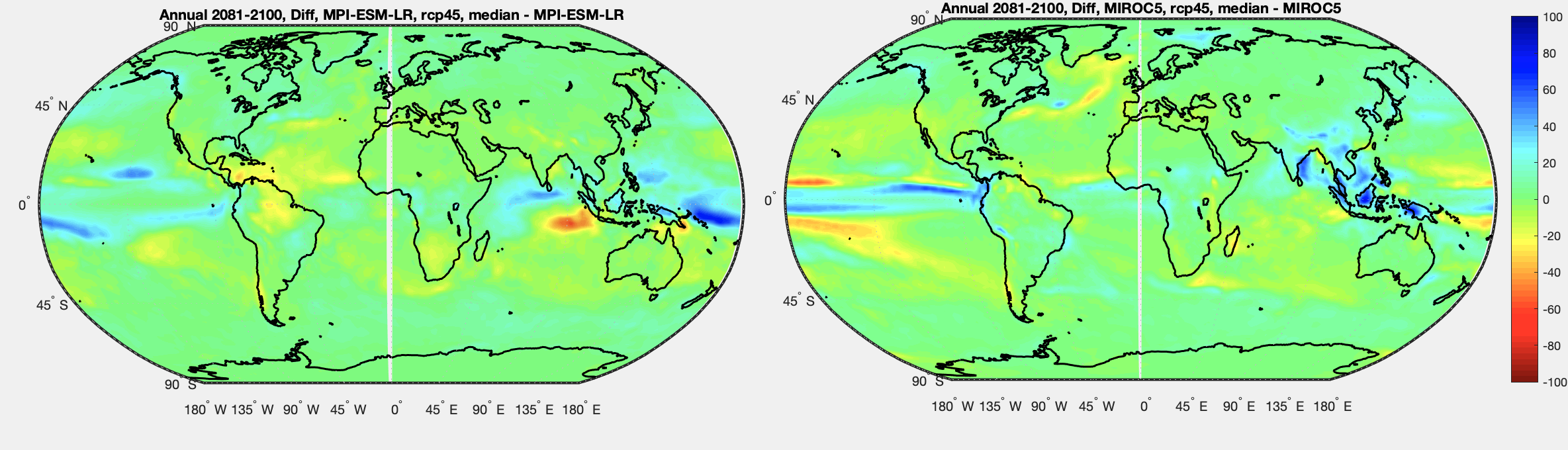 Here we will look at two of the four emissions scenarios. We compare 2081-2100 vs 1979-2005.