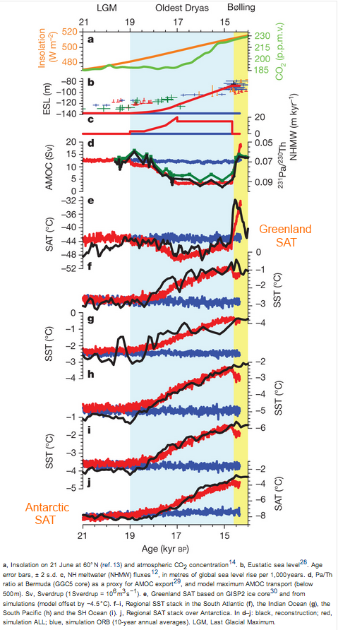 Twelve – GCM V – Ice Age Termination – very recent work from He et al 2013, using a high resolution GCM (CCSM3) to analyze the end of the last ice age and the complex link between Antarctic and Greenland
