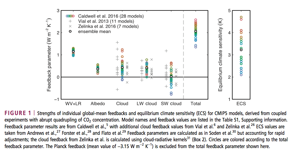 Note 1: From Ceppi et al 2017: CLOUD-RADIATIVE EFFECT AND CLOUD FEEDBACK: