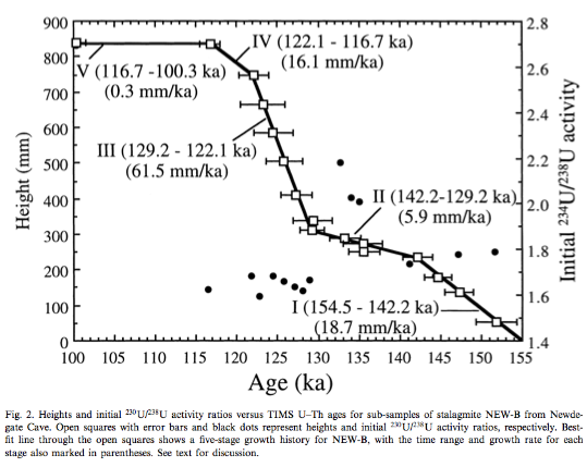 But the Drysdale paper is interesting on two fronts – their dating method and their “one result in a row” matching a theory with evidence (I extracted more text from the paper in note 5 for interested readers). Let’s look at the dating method first.